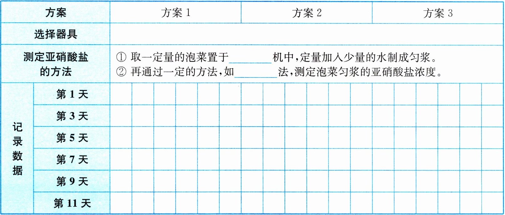 活动二 设计“探究影响泡菜亚硝酸盐浓度的因素”的方案