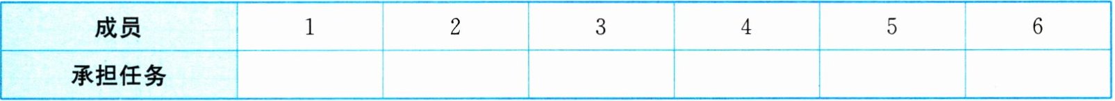 答案:2. 成员分工:| 成员 | 1 | 2 | 3 | 4 | 5 | 6 |