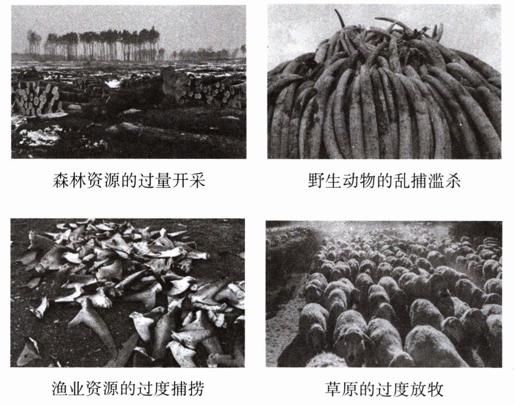 3. 几种过度开发利用生物资源的现象如下图所示。