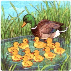 ① 池塘边的草丛中住着一只绿翅膀水鸭,它刚刚生下十个蛋。这十个蛋可是它最宝贵的东西,像钻石一样珍贵!在水鸭妈妈的细心照顾下,小水鸭们安全出生,像黄色天鹅绒做成的十个小椅垫……