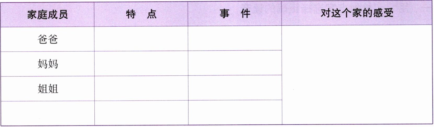 二、[试身手]仿照示例写一个具体事例,将家人的特点说清楚。