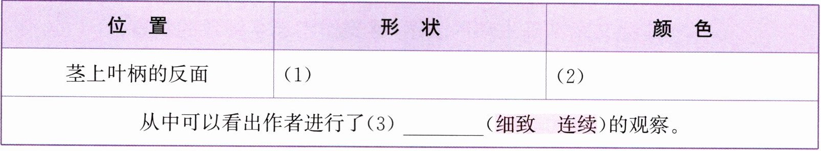 4. (阅读要素)作者不仅观察细致,而且连续观察了一段时间。下列哪些句子能看出作者在“连续观察”?请在后面括号内画上“√”。