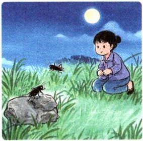 ③幼时,我很爱捉虫。在朦胧的月光下,随处可以听见各种虫子的鸣唱,唱得最动听的肯定是蛐蛐了。我会轻轻地走入草堆,脚步轻盈得活像一只猫。翻开一块块大石头,我便看到披着黑色“大衣”的蛐蛐在那里又蹦又跳。我猛地向前一跳,双手一捂,小心翼翼地将蛐蛐提起,然后借着月光,跟邻居小伙伴开心地斗蛐蛐。待我玩累时,月亮也已经悄悄地到云朵里歇息,外婆牵着我的手带我回家。