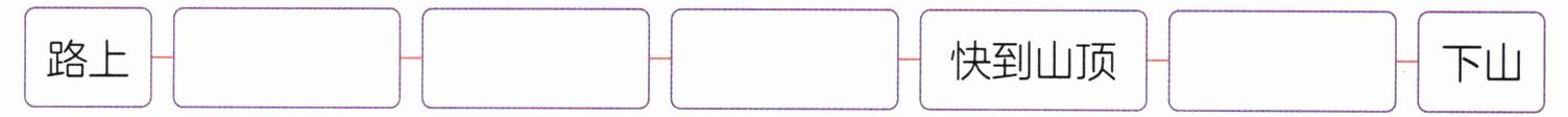 答案:1. 到了山下 进了山门 山路两边 山顶上 2. 远处的高楼大厦变小了,汽车像蚂蚁一样小;近处的树木郁郁葱葱,像绿色的海洋,真美! 山顶上有一座寺庙……寺庙里有许多巨大的雕塑 3. 虽然上山很累,但是你能看到在山下看不到的美妙风景。学习也是这样,只有努力攀登,才能取得优异的成绩。 示例:上学期,我努力学习,课上认真听讲,课后用心复习,最终在期末考试中取得了优异的成绩。努力之后的收获真让人开心。