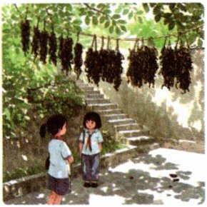 ①那天下午,我和小容放了学正往家走,下了十几级梯坎,眼前一亮,斜坡上的两株洋槐树之间牵着根麻绳,麻绳上挂满了霉干菜。馋嘴的我在大人做菜前,常常会讨一小段霉干菜生吃当零食,咸津津的,带一点点甜,和吃盐金枣的感觉差不多。那一刻,我被眼前绳串上的霉干菜吸引,肚子里的馋虫被勾了出来。歪过头,见小容也在盯着霉干菜看。
