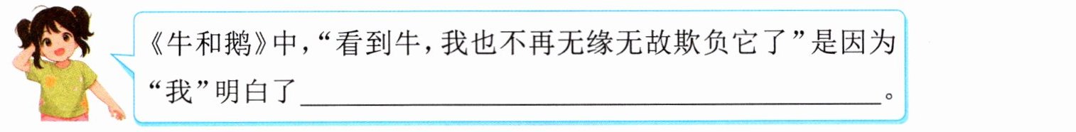 《牛和鹅》中,“看到牛,我也不再无缘无故欺负它了”是因为“我”明白了