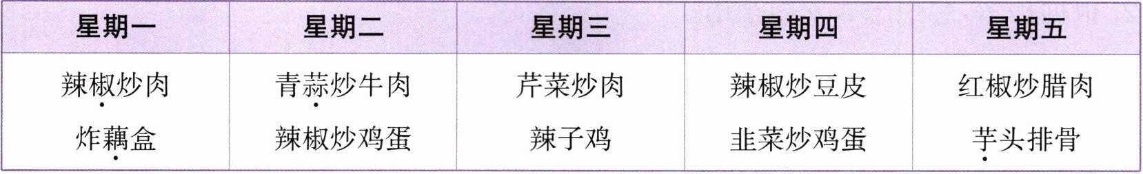 二、老师拿来了食堂的午餐菜谱,请你读一读,完成练习。