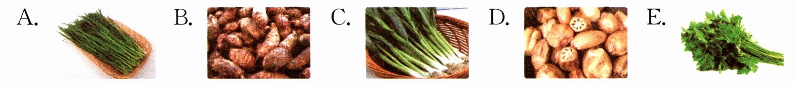 2. 请你结合菜谱将买来的蔬菜摆放好。(填字母)
