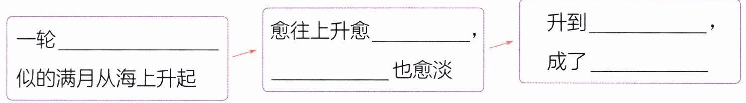 两个方面描写月亮,给人一种身临其境的感觉。2. (思维导图)作者观察到天空中的明月是如何变化的?填一填。