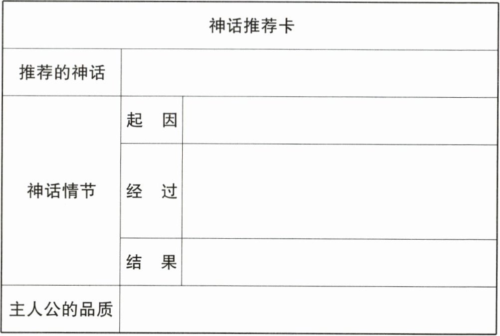 9. 亲爱的小琳,你仿佛拥有了通往神话世界的魔法钥匙,快用这张神话推荐卡开启一扇神秘之门,带领我们走进那些令人惊叹的神话故事里吧!(5分)