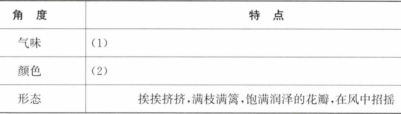 答案:1. A B 2. 抽出嫩条 花朵开放 依然青翠稠密 3.