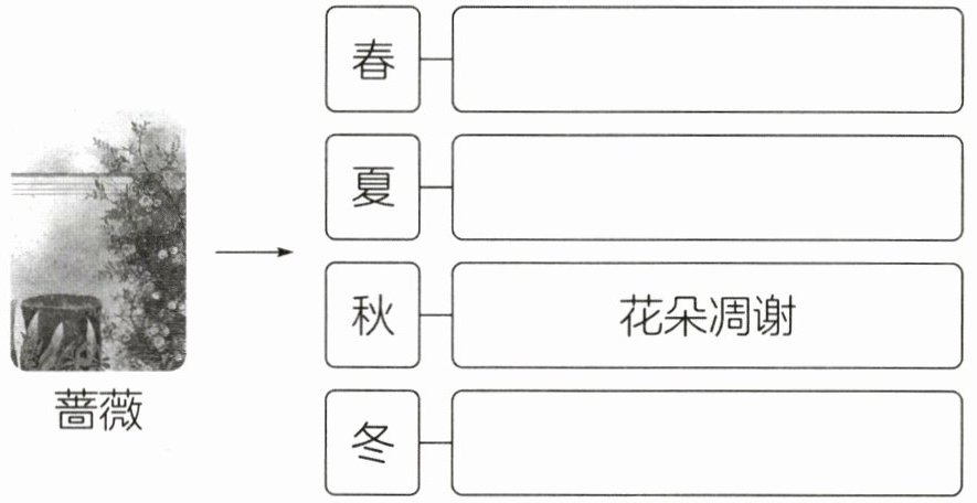 1. (阅读要素)阅读短文画“______”的句子,我们可以知道短文是按照______(A. 时间 B. 空间)顺序来描写野蔷薇的生长过程的。由此可以看出作者对野蔷薇的观察是______(A. 间断的 B. 连续的)。(填字母)(2 分)