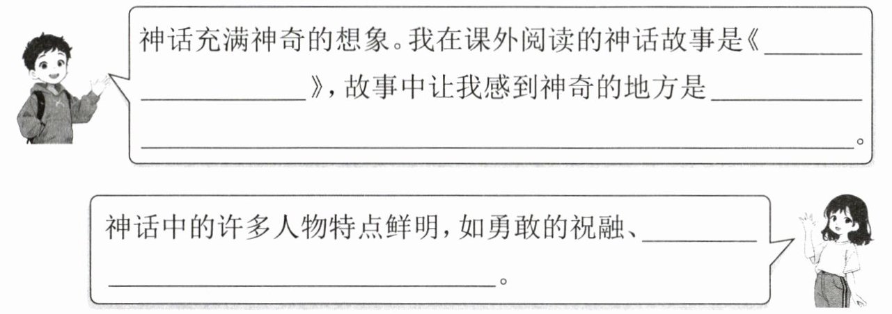 (2)除了《结网捕鱼》,同学们还交流了课外阅读的其他神话故事,请你参与其中,把横线上的内容补充完整。(4 分)
