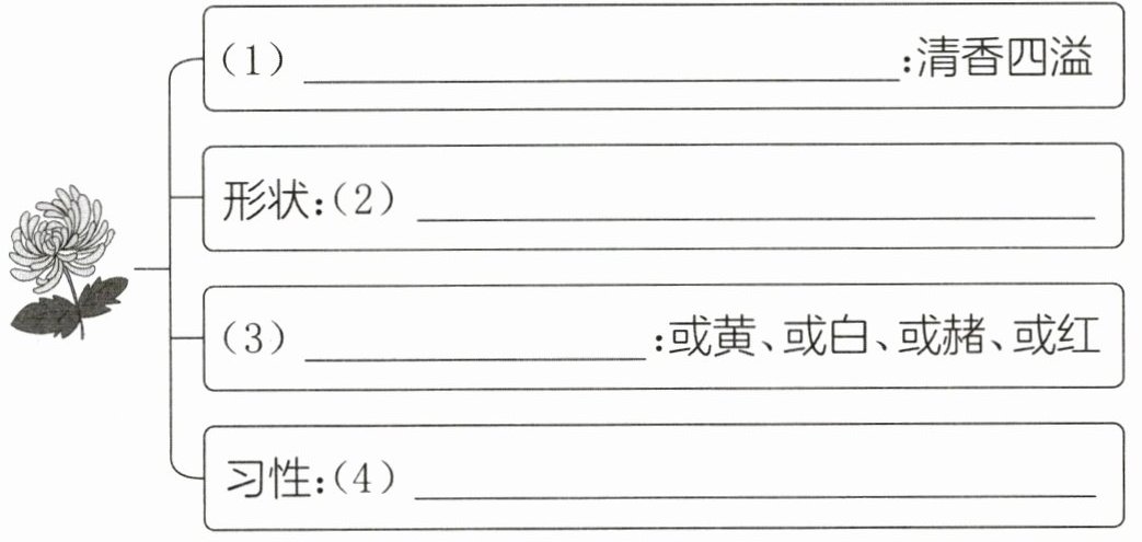 3.(思维导图)作者从哪些方面描写了菊花?请将下面的思维导图补充完整。(4 分)