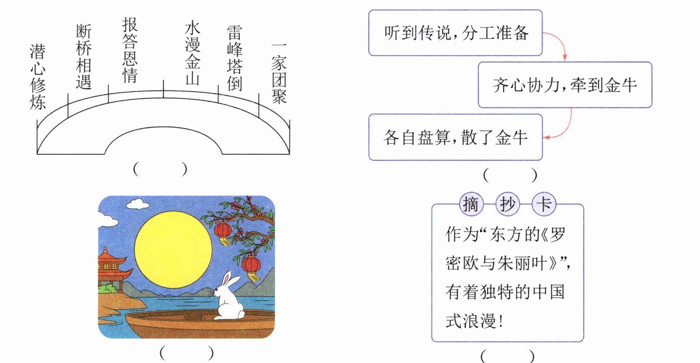 五、小语读了许多民间故事,并用画情节图、做阅读摘抄卡、画插图、摘抄他人评论等方式加以记录。请你猜猜小语读了哪些民间故事吧!(填序号)