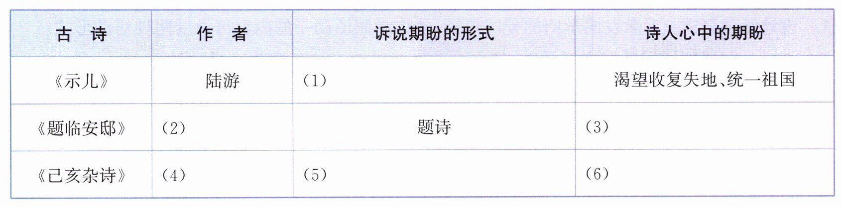 三、围绕“寻找诗人心中的期盼”这一主题,填写下面的表格。