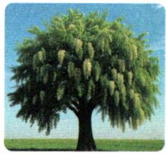 ①这棵槐树的树干十分粗大,要两三个大人才能围抱住,树干上分出四个大树权,树权上又分出许许多多的小树枝。②它还特别高。③它的枝叶十分茂盛。④绿色的树冠上堆叠着象牙般的白色槐花。