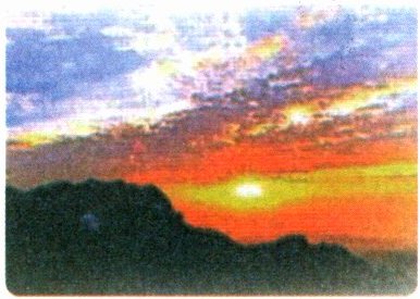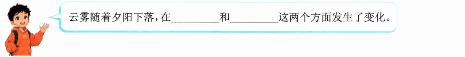 ⑦ 天边留下了一幅无比宽大的、五彩斑斓的织锦。这最后一个镜头像烙印一样刻在我的脑海里:这是不是太阳给送行者回赠的礼物呢? 我痴痴地想。