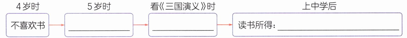 3.(阅读要素)本文写了“我的读书经历以及总结出的读书体会,请将下面的思维导图补充完整。