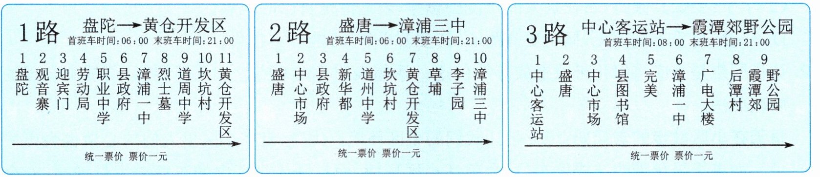 )A. 坐3路车直达,从盛唐站出发坐4站到漳浦一中站。