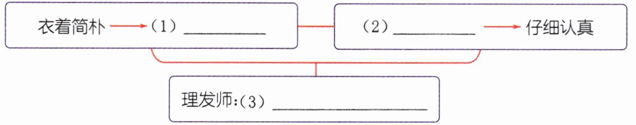 1. 仔细阅读短文,把下面思维导图补充完整,完成对理发师形象的分析。