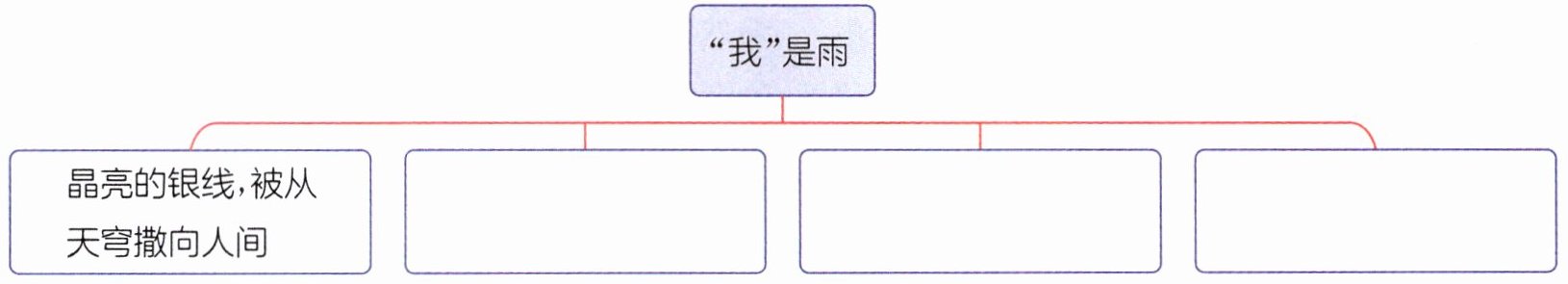 1. (思维导图)你从哪些地方可以看出“我”是雨?照着样子填写思维导图。