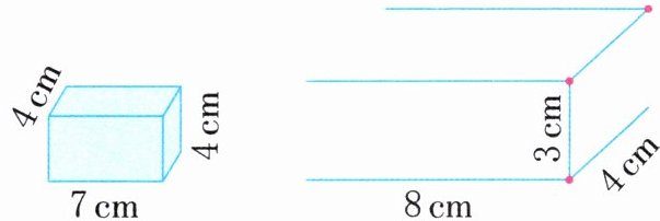 )厘米。答案:162 解析:彩绳的长度是由长方体纸盒的2条长、2条宽、4条高和打结处的长度组成的,故一共需要彩绳35×2+20×2+8×4+20=162(厘米)。