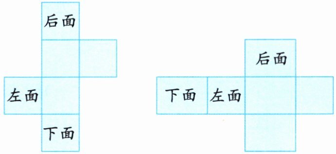 2. (操作探究)下面是正方体和长方体的展开图,请在展开图上标出上面、前面和右面。
