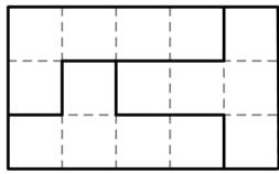 6. 下面这张长方形纸已经被折成若干个同样大小的正方形,请你沿折痕将它剪成几个部分,使每个部分都能折成一个无盖的正方体纸盒。请将裁剪方案在图上画出来。