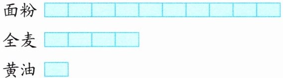 (2)如果这三种食材各有 200 克,那么当全麦全部用完时,黄油还剩多少克? 面粉又添了多少克?