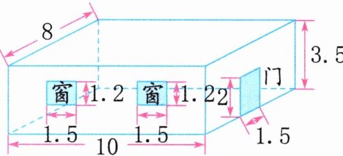 答案:10×3.5×2+8×3.5×2-1.5×1.2×2-2×1.5=119.4(平方米) 119.4÷35≈4(桶)