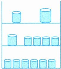 4. (思维过程)如图,把 9 升葡萄酒倒入酒架上放置的 1 个大杯、2 个中杯和 10 个小杯中,全部倒满无剩余且每层存放葡萄酒的体积正好相等。每个大杯和每个小杯中各存放葡萄酒多少升?