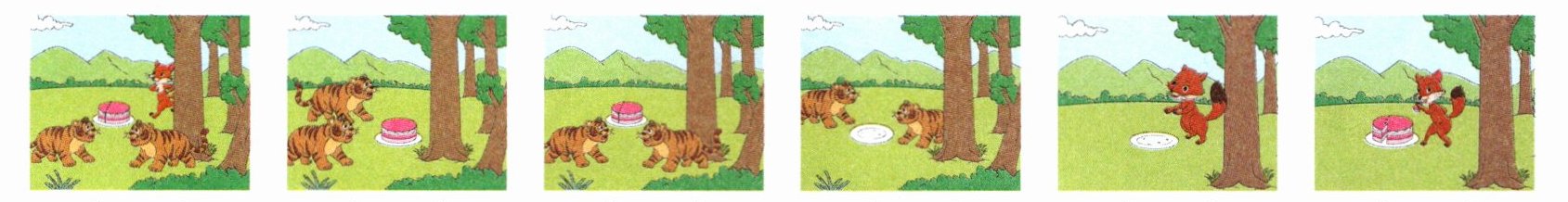 Two hungry tigers find a cake under a tree. They try to divide the cake into two equal(相同的) pieces. But one is big and the other is small. They both want to have the big one, so they begin to quarrel(争吵). A fox comes to them. He's very hungry. He wants to eat the cake. So he says to the tigers, "Let me help you. I can make the two pieces equal. " The tigers are very happy. The fox takes a bite of the big piece. But he eats too much of it. Now the big piece becomes the small one. "Don't worry. Let me try again," the fox says. Then the fox takes a bite of the big piece. But he eats too much of it. The big one becomes the small one. Finally, the fox eats the whole cake. "It's difficult to divide it equally. I must go now. " The fox quickly runs away. Now, the two tigers are sad and hungry.