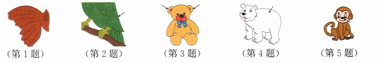 .答案:1. tail 2. wings 3. ears 4. body 5. nose