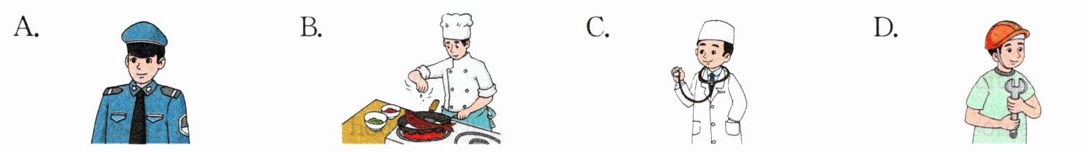 ( )4. A. 他是一名医生。 B. 他是一名警察。 C. 他是我的叔叔。