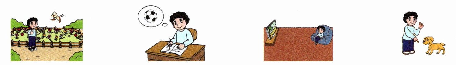 It is Saturday morning. John is going to do his homework. He thinks of the football match in the afternoon. When he begins to do his homework, his dog comes to him. He plays with it. Then he sees a bird in the garden. The bird is so nice. He goes to watch it. He likes it very much. It's time for Birds in the Forest. He wants to watch it. But it is lunchtime now. When can John finish his homework? Can you tell him?