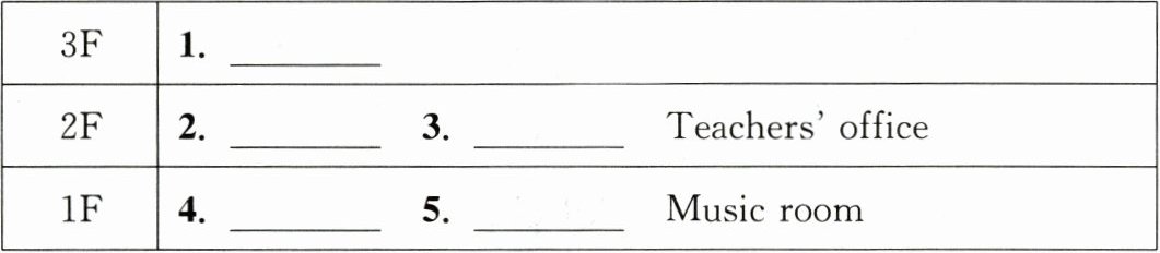 There are five teaching buildings in my school. Look at this building. My classroom is in it. It is on the second floor,next to the teachers’ office. It is big and bright. There are twenty-five boys and nineteen girls in my class. We have five lessons every day. We are happy to study here. There is also an art room on the second floor. On the first floor,there is a library. After lunch,we can read books there from 12:30 to 1:30 pm. I like reading very much. We can also borrow books from it. The table tennis room is between the music room and the library. There is a computer room on the third floor. We have a computer lesson every week there. Look! This is our new playground. It is very big. I like playing football there with my friends after school. I love my school.