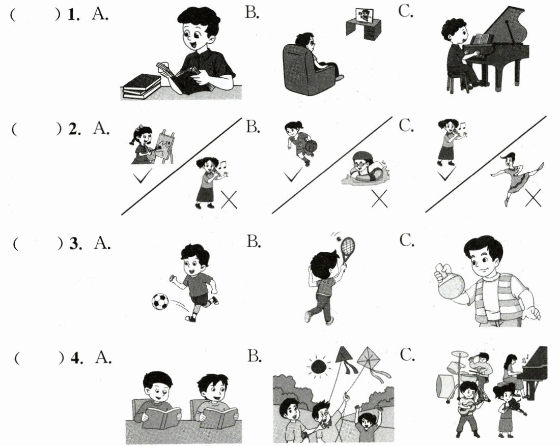 ( )2. A. 我会滑冰。 B. 我喜欢滑冰。 C. 我正在滑冰。