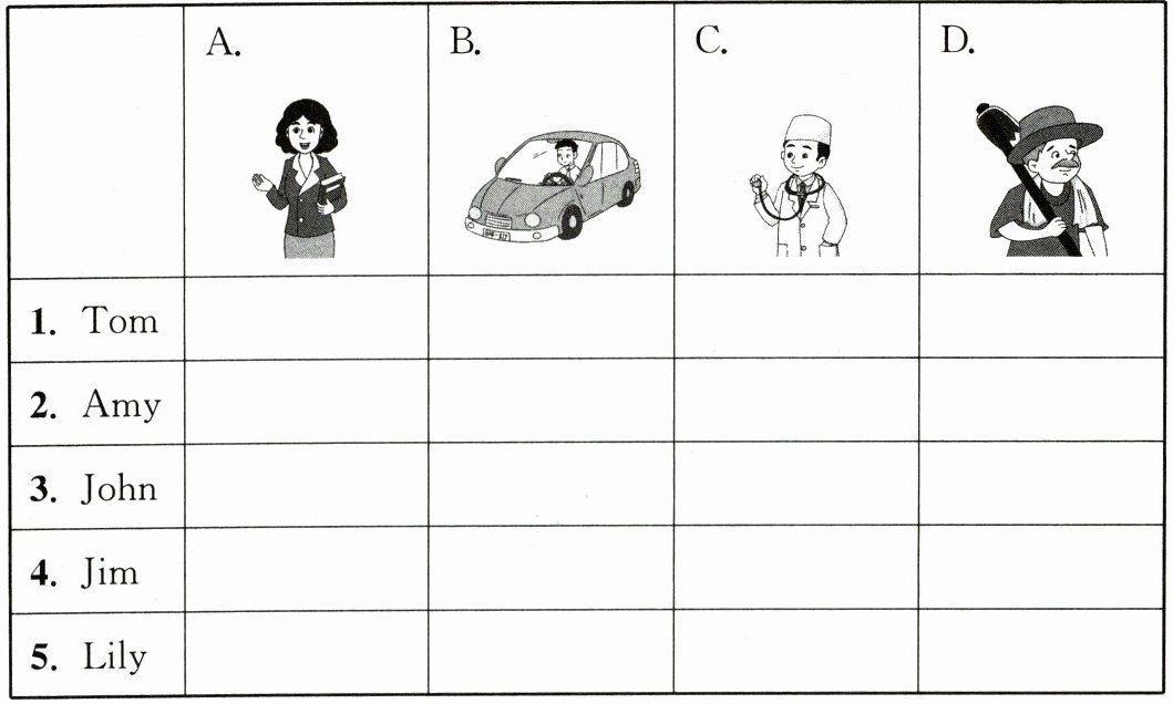 四、听录音,根据所听短文,在表格相应的位置画“ √ ”。(每小题1分,共5分)
