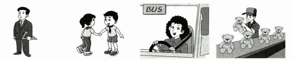 ) 1. A. He’s a worker. B. She’s a nurse. C. He’s at home.(
