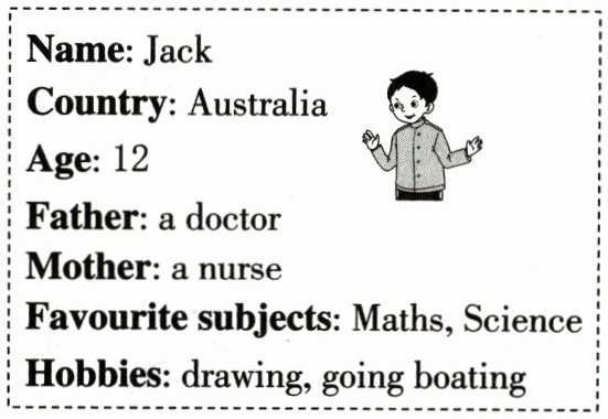 你想交外国朋友吗?下面是三位外国小朋友的信息卡,请你选择其中一位了解并介绍一下。