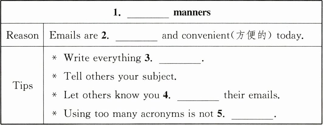 答案:1. Email 2. popular 3. clearly 4. get 5. good