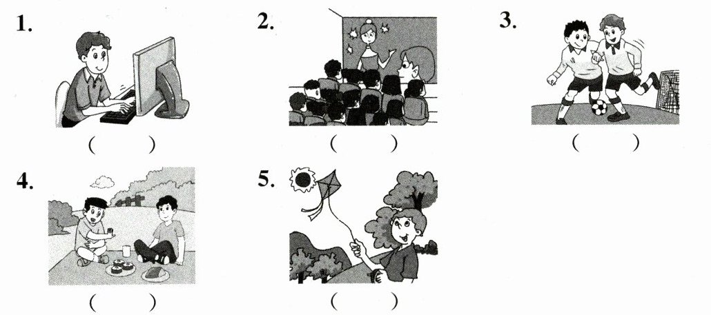 ( )2. A. 在公园里。 B. 我在家。 C. 在网上。