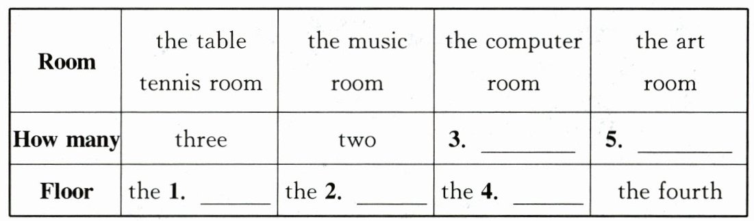 3. two后接可数名词复数,room的复数是rooms;“在二楼”用序数词second,填rooms; second。