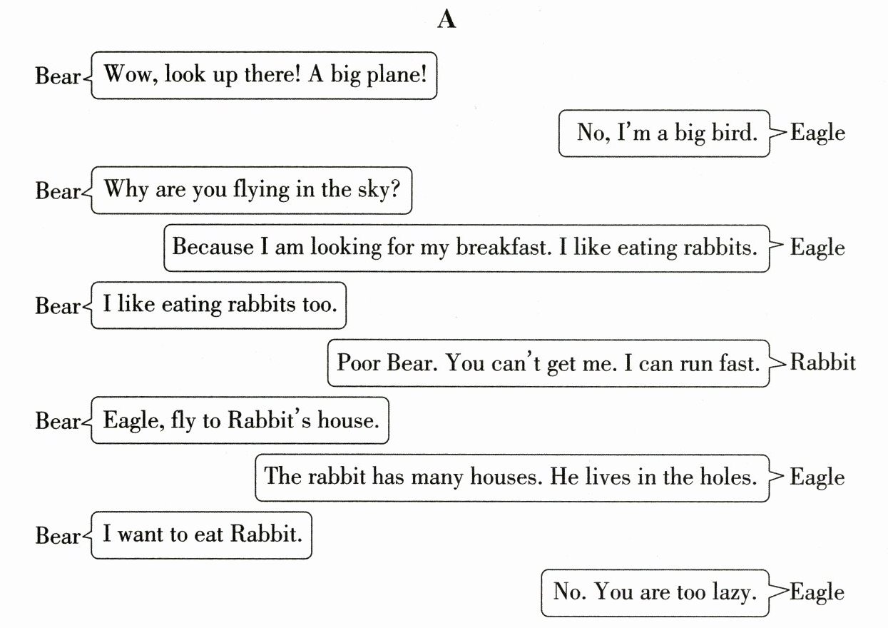)5. Eagle helps Bear get Rabbit.答案:1. F 2. F 3. T 4. F 5. F