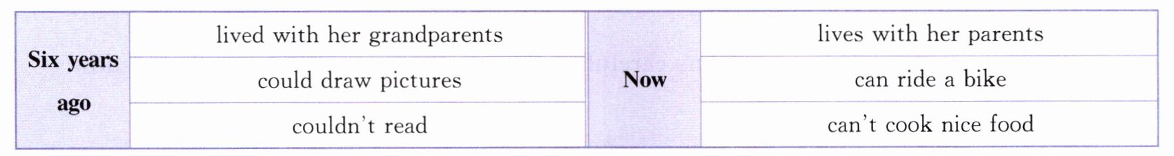 Six years ago, I lived with my grandparents. I could draw pictures. But I couldn't read. Now, I'm twelve years old. I live with my parents. I can do many things. I can ride a bike well. But I can't cook nice food.