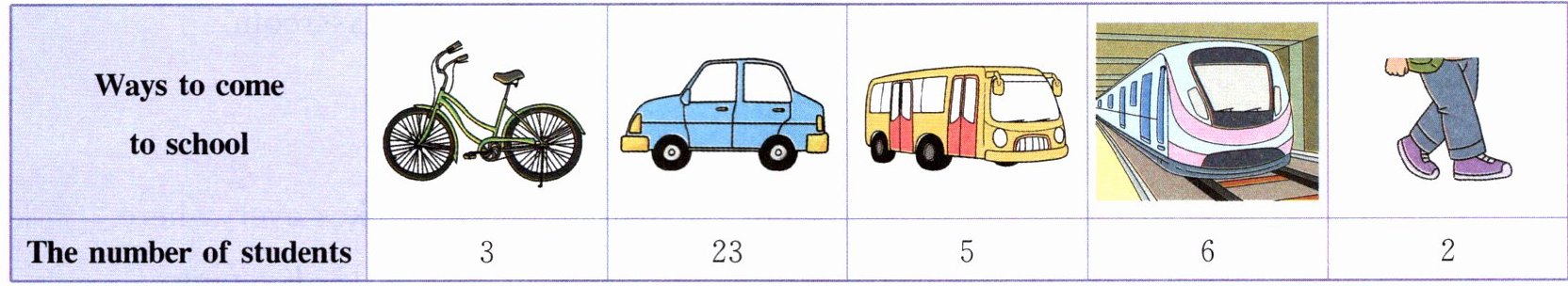 ) 4. Which one is TRUE?A. Six students come to school by metro according to the survey.