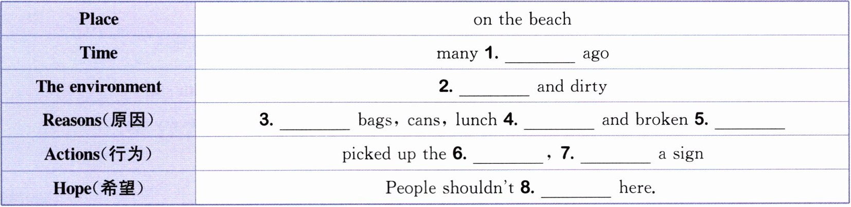 答案:1. years 2. messy 3. plastic 4. boxes 5. bottles 6. rubbish 7. made 8. litter