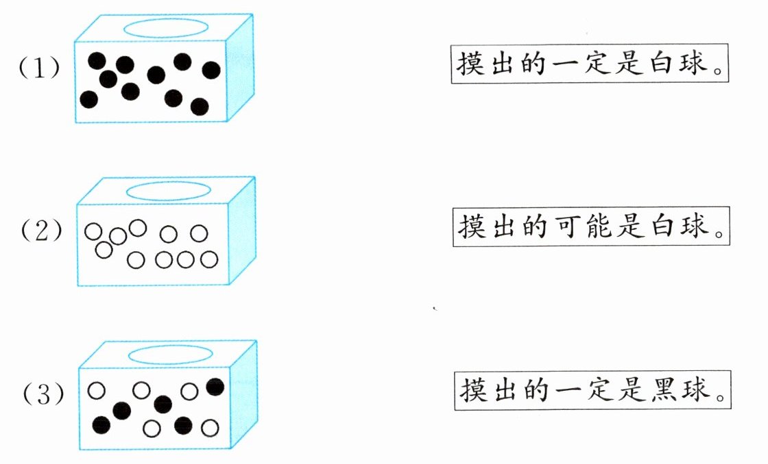 答案:(1)连“摸出的一定是黑球”;(2)连“摸出的一定是白球”;(3)连“摸出的可能是白球”