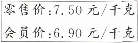 2 妈妈在水果超市以会员价买了$4.5kg$的苹果,比以零售价买要便宜多少元?